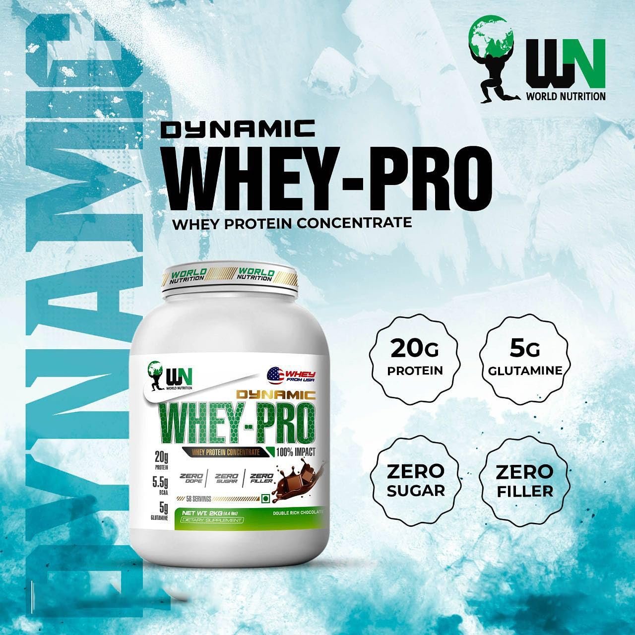 Dynamic Whey-Pro Protein | High-Impact Concentrate with 20g Protein, 5.5g BCAA, 5g Glutamine for Enhanced Muscle Recovery | Zero Sugar, Zero Dope, Zero Filler